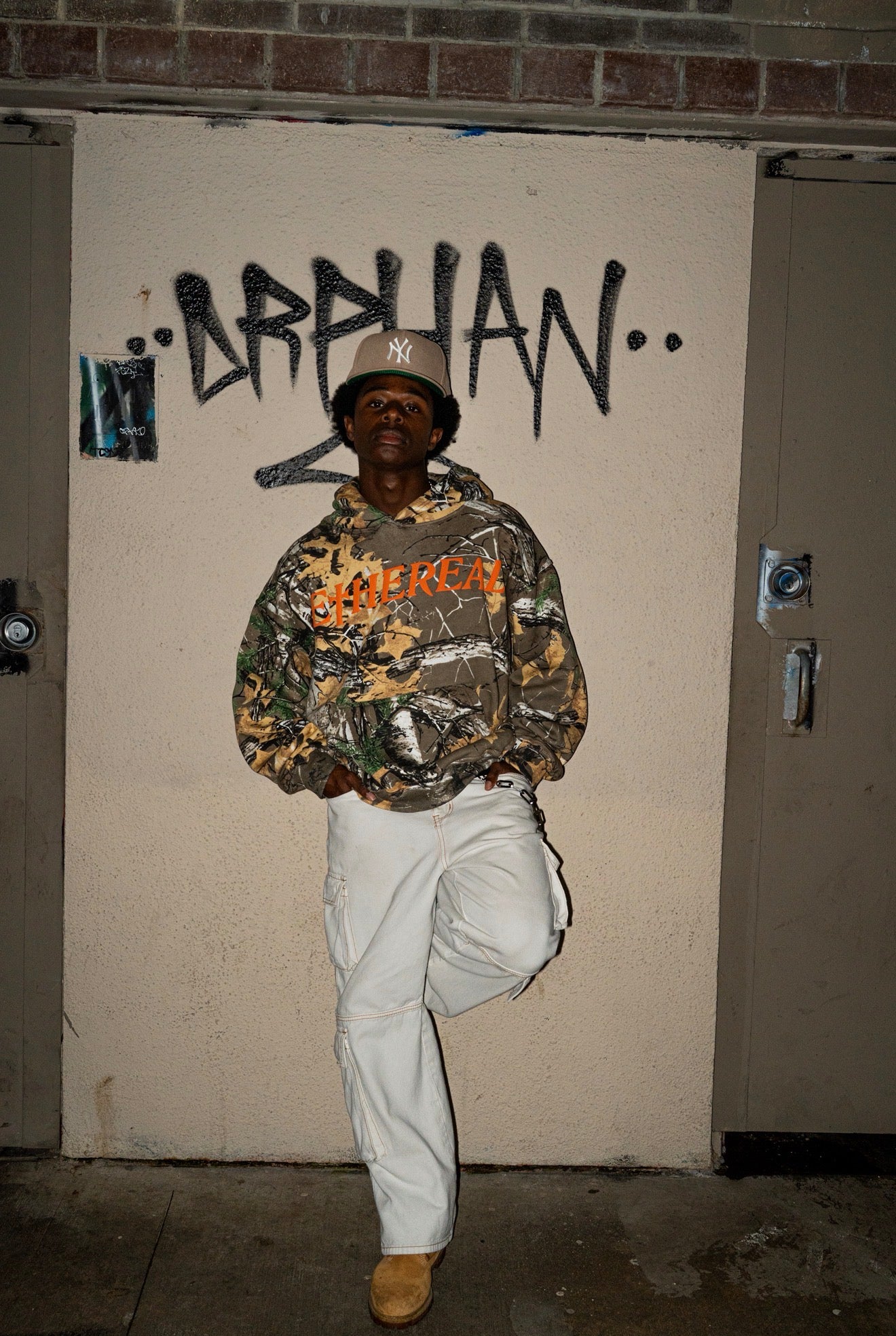 Before I never really liked the forest camo look, but it grew on me over time. I also saw other clothing stores impliment this pattern more, so I was simply inspired. I added the Orange on because I know that when people go hunting they often wear a bright orange color with the forest camo. It just looked dope to me so I added it to my design. There is also a Camo/White variant as well, but this color way is my definitely my favorite from the collection.